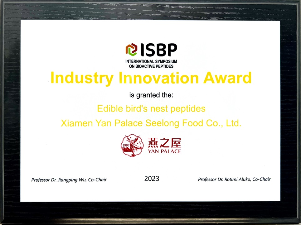 圖:燕之屋榮獲燕窩肽——行業(yè)創(chuàng)新獎(jiǎng)(Industry Innovation Award)