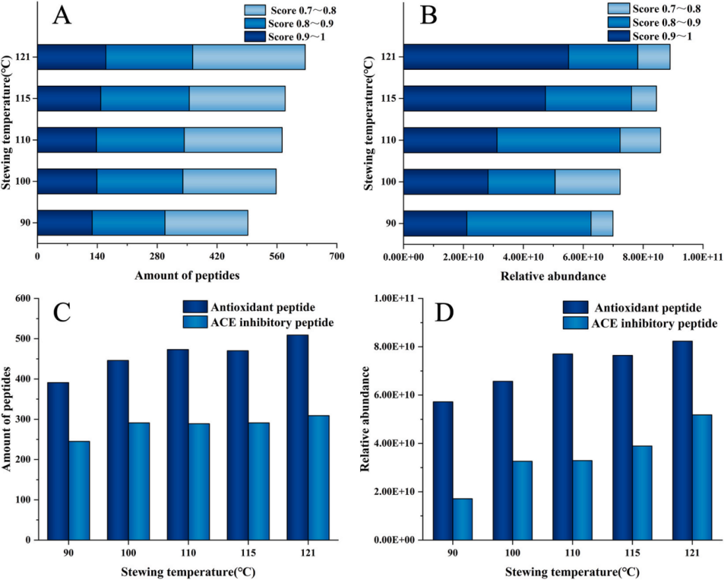 而燕之屋本次與江南大學(xué)合作發(fā)表的權(quán)威SCI論文,則在這一認(rèn)知基礎(chǔ)上實現(xiàn)了更深層次的突破。研究表明,121℃燉煮工藝不僅使燕窩蛋白更易被消化,更在此基礎(chǔ)上促進了具有特定生理功能的小分子活性肽的釋放② 。具體實驗數(shù)據(jù)顯示,經(jīng)過121℃燉煮的燕窩,相較于傳統(tǒng)燉煮的燕窩,活性肽的數(shù)量增加了27.2%,含量上升了27.3%,同時,其ACE(血管緊張素轉(zhuǎn)化酶)抑制活性提升了28.6%② 。ACE抑制活性是現(xiàn)代健康科學(xué)中公認(rèn)的一項重要生物功能,代表著有助于維持健康血壓水平、保護心血管系統(tǒng)健康的潛力② 。這項研究結(jié)果通過量化數(shù)據(jù)揭示了,科學(xué)的燉煮工藝能夠增加燕窩中特定活性物質(zhì)的含量,同時增強燕窩在特定健康領(lǐng)域的生物活性潛力。